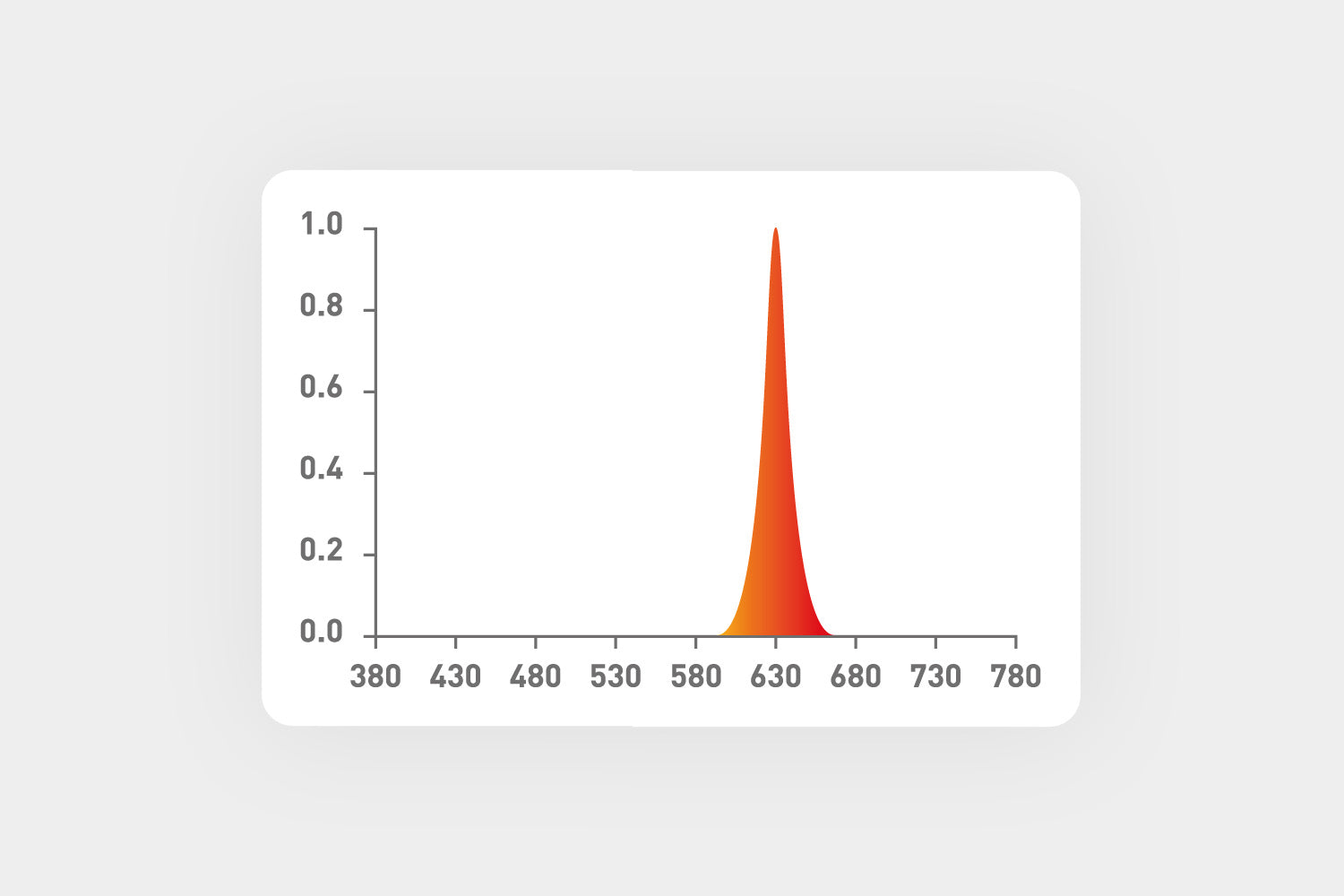 Luce rossa (630 nm): La nostra nota luce da 630 nm, così come la conosciamo da Luce, Torre e le nostre luci notturne. Delicata, calmante e senza luce blu: ideale come illuminazione serale o notturna che non stimola il sistema nervoso e protegge il ritmo circadiano.
