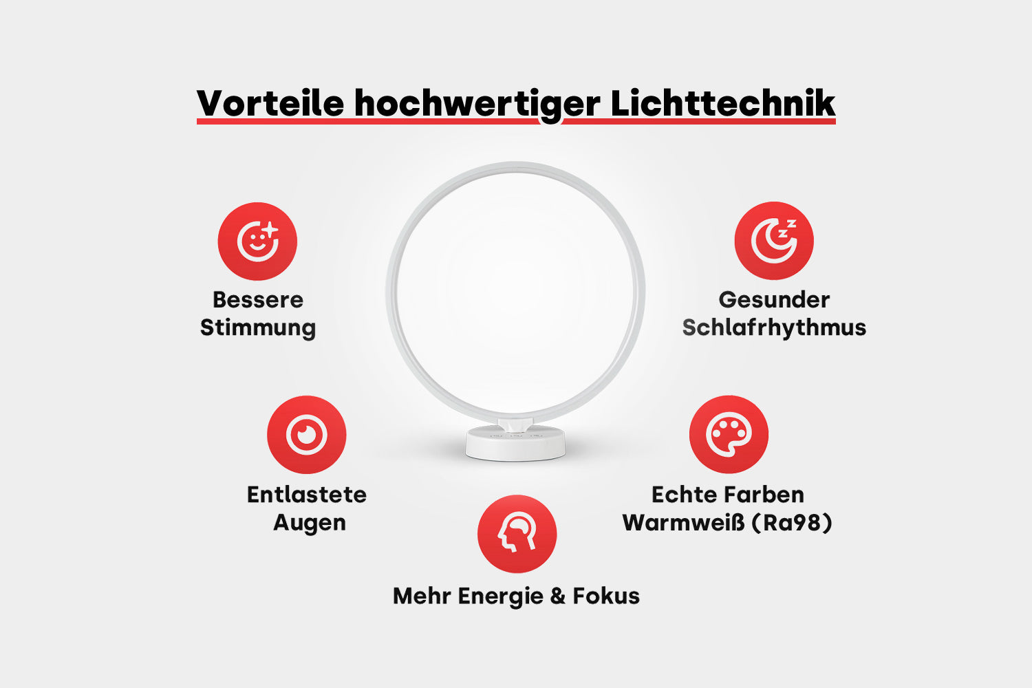 Schaffe dir mit unserem Ringlicht eine gesunde Beleuchtungsumgebung und genieße die vielfältigen Vorteile, die es bietet. Ob zur Entspannung, zum Wachwerden oder für eine angenehme Atmosphäre – unser Ringlicht ist die ideale Wahl.