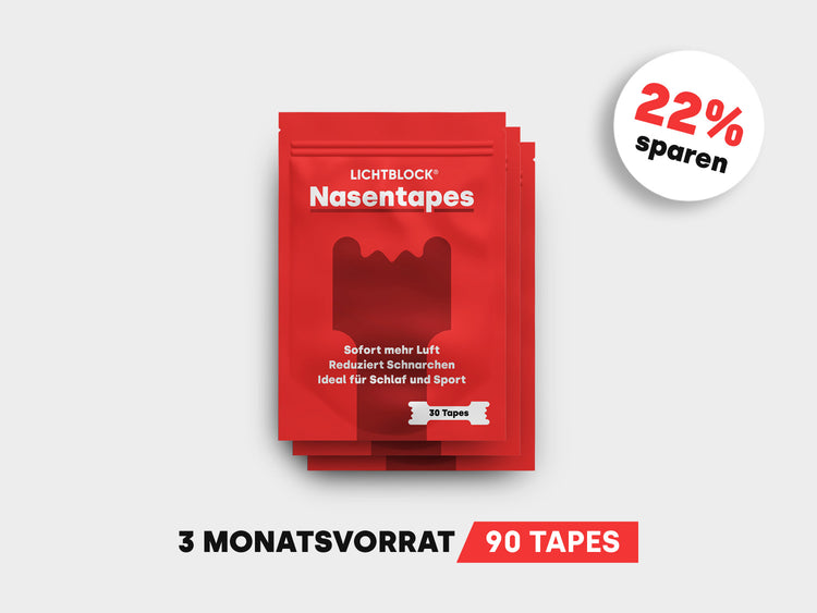 Wenn es dir wichtig ist, die Nasenatmung zu verbessern oder Schnarchen zu reduzieren, dann empfehlen wir zusätzlich den Einsatz unserer Lichtblock® Mundtapes. Diese unterstützen das geschlossenhalten des Mundes während der Nacht, was die Nasenatmung fördert und so zu einer ruhigeren und erholsameren Schlafumgebung beiträgt. Die Kombination unserer Nasen- und Mundtapes kann effektiv dazu beitragen, deine Atmungsqualität deutlich zu verbessern.