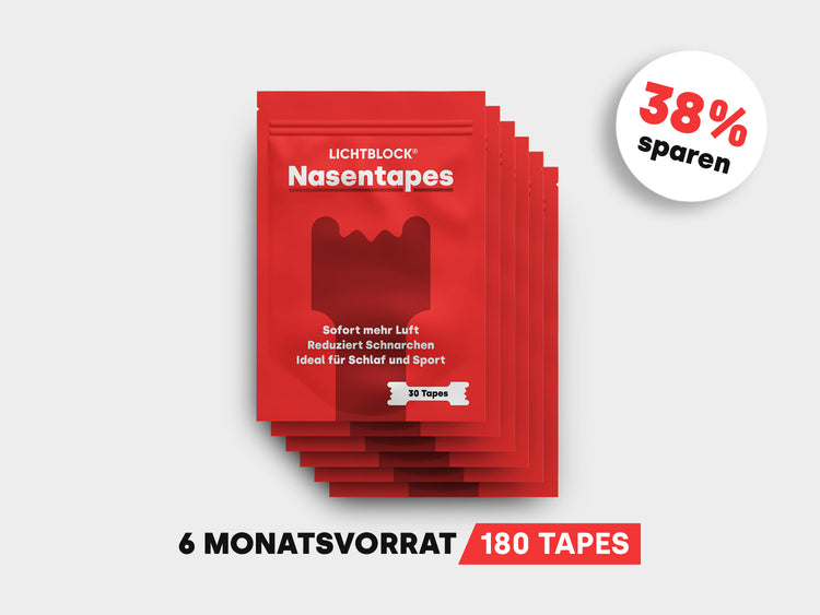 Wenn es dir wichtig ist, die Nasenatmung zu verbessern oder Schnarchen zu reduzieren, dann empfehlen wir zusätzlich den Einsatz unserer Lichtblock® Mundtapes. Diese unterstützen das geschlossenhalten des Mundes während der Nacht, was die Nasenatmung fördert und so zu einer ruhigeren und erholsameren Schlafumgebung beiträgt. Die Kombination unserer Nasen- und Mundtapes kann effektiv dazu beitragen, deine Atmungsqualität deutlich zu verbessern.